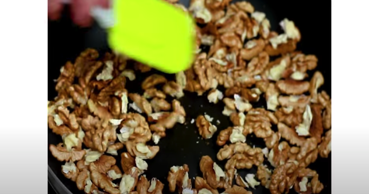 2. Na suchej, rozgrzanej patelni, upraż orzechy, a następnie je posiekaj.