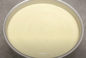 W końcowej fazie całość dolewamy do trzeciej części, delikatnie mieszając po obwodzie. Ciasto należy delikatnie przelać do okrągłej formy (ok. 20 cm) lub mniejszych, o kształcie kwadratu. Owijamy je folią z góry oraz dołu, tak, by nie była wyższa niż 1,5 cm od górnej krawędzi.