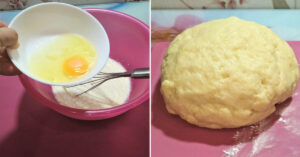 Trzeba dokładnie wymieszać jedno jajo z serem za pomocną widelca. Przechodząc do naszych pysznych bułeczek należy wymieszać składniki takie jak cukier, sól, ocet oraz kefir używając kuchennej trzepaczki. Kiedy składniki dobrze się połączą należy dosypać proszek do pieczenia, oraz dodać jedno żółtko i dwa białka i dosypując mąkę – dokładnie ugnieść ciasto.