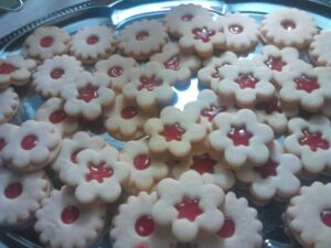 Po wystudzeniu na jedno ciastko nałóż trochę dżemu lub nutelli, a następnie przykryj drugim. Pozostaw na blacie przez noc. Na drugi dzień ciastka są gotowe do zjedzenia!