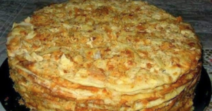 Aby ciasto zyskało idealną równość, weź talerz i gdy jeszcze jest gorące, połóż go na nim, odcinając niepotrzebnie wystające kawałki. Poobcinane ciasto odłóż na bok. Każdą warstwę ciasta bardzo obficie posmaruj ciepłym kremem.