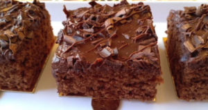 Mąkę należy wymieszać z cukrami, kakao, proszkiem, budyniem i przyprawami. Jabłka zetrzeć na tarce o grubych oczkach i dodać do całości, podobnie jak mleko, olej oraz majonez. Wszystko wymieszać dokładnie i wylać na wyłożoną papierem do pieczenia blachę o wymiarach 26 x 36 cm.