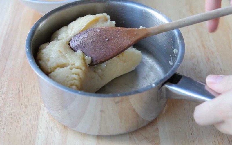 Do przygotowania tego ciasta w stylu tureckim niezbędny jest mały rondel. Na średnim ogniu dodaj do rondla wodę i masło. Doprowadź wszystko do wrzenia. Następnie dodaj mąkę i mieszaj, aż wszystko zostanie dobrze połączone.