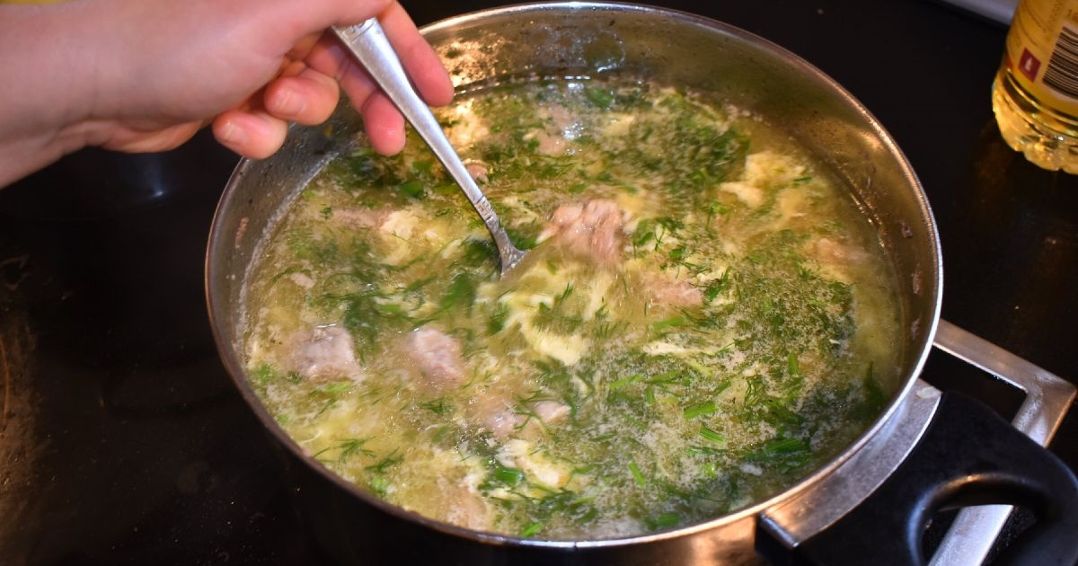 3.W małej miseczce ubij jajka, następnie wlewaj do zupy małym strumyczkiem, cały czas mieszając i gotuj tak jeszcze przez 7 minut.