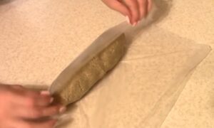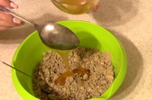 Dokładnie mieszamy ze sobą dokładnie wszystkie składniki do połączenia się ich w gładką masę chałwową. Chałwę formujemy w ulubiony kształt (możesz użyć do tego silikonowej foremki, blaszki do pieczenia, lub po prostu folii spożywczej).