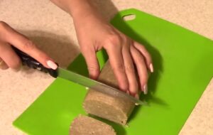 Po tym czasie sprawdzamy, czy nasza chałwa odpowiednio stężała. Odpowiednio schłodzoną chałwę można kroić w plastry i podawać.