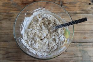 Do miski dodawaj stopniowo mąkę ciągle mieszając. Po wymieszaniu wszystkich składników należy zagnieść ciasto i włożyć je do plastikowej torebki. Torebkę z przygotowanym ciastem drożdżowym włóż do lodówki. Minimalny czas rośnięcia to 2 godziny.