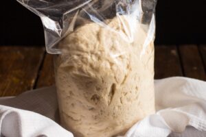 Należy wymieszać składniki, włożyć przygotowaną masę do torebki i schować do lodówki. Nawet w tak zimnym miejscu ciasto powinno urosnąć. Możemy je przechowywać do około tygodnia i wykorzystać do różnych deserów i dań na które mamy ochotę.