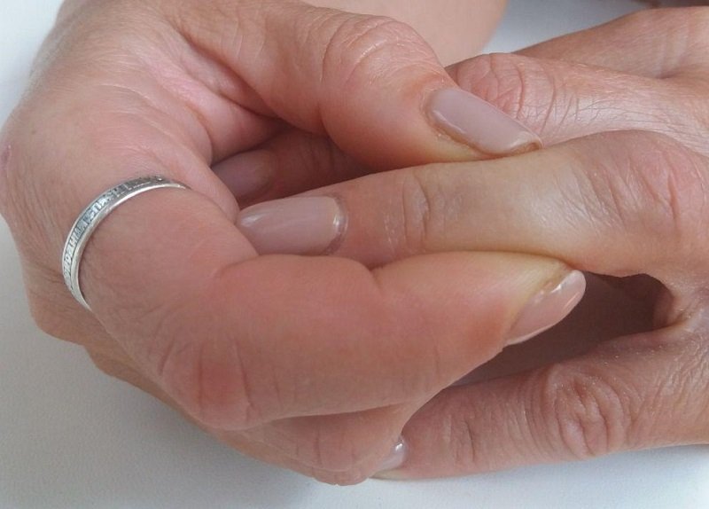 W przypadku problemów z kolanami, szczególnie u osób starszych, należy masować środkowe części palca serdecznego i środkowego.