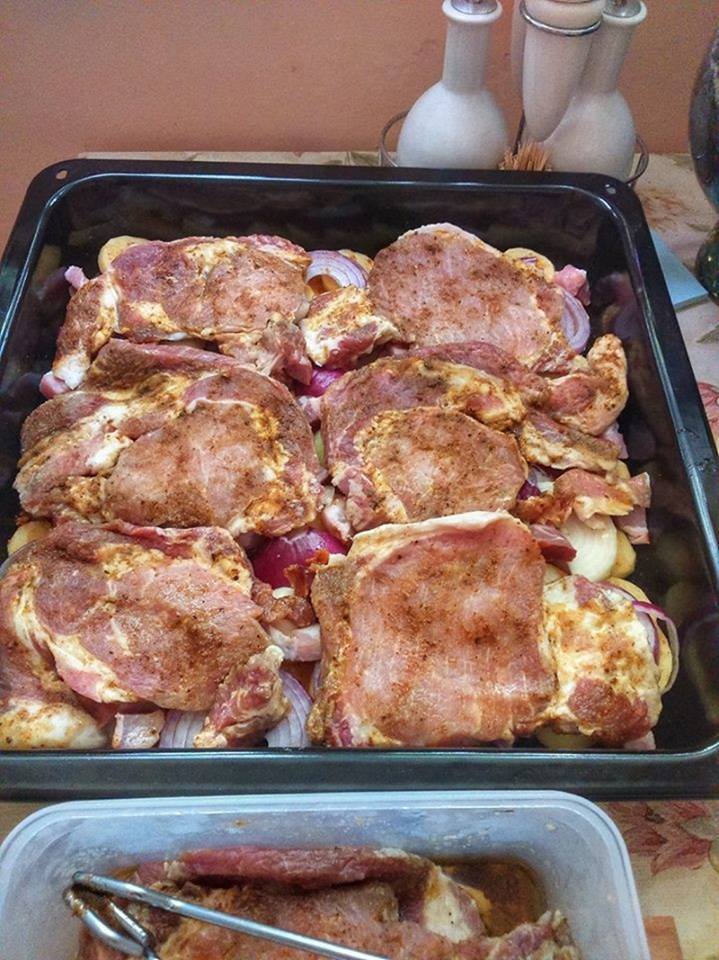 Pokrój ziemniaki w plastry, a następnie obtocz je w marynacie. Włóż mięso do marynaty i pozwól mu odpocząć przez około godzinę.