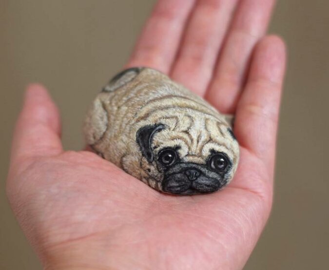 ”Oczy zostawiam na sam koniec, ponieważ moim zdaniem kamień jest skończony tylko wtedy, gdy po namalowaniu oczy widzę w nich życie, a nie tylko rusynek.”