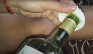 Za pomocą nasączonego wykonaną miksturą wacika, natrzyj kolano.