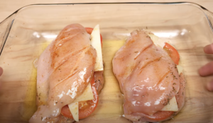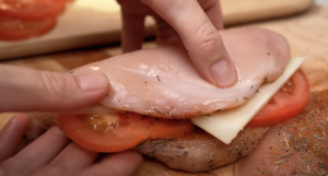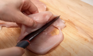 Dokładnie umyj i osusz mięso. Natnij piersi wzdłuż, jednakże uważaj, aby nie przeciąć ich do końca.