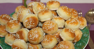 Tak ułożone bułeczki smarujemy roztrzepanym jajkiem i posypujemy sezamem. Bułki należy piec w piekarniku przez 20-25 minut. Temperatura piekarnika – 180 stopni C. Chcesz mieć bułeczki na słodko? Dodaj do ciasta trochę cukru, a nadzienie zrób z dżemu, twarogu czy owoców.