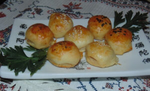 Najlepszym pomysłem na farsz do naszych bułeczek będzie wątróbka, mięso, a także duszona kapusta. Dobrą propozycją będą również ziemniaki z grzybami. Jednak dziś proponujemy nadzienie serowo – kiełbaskowe.
