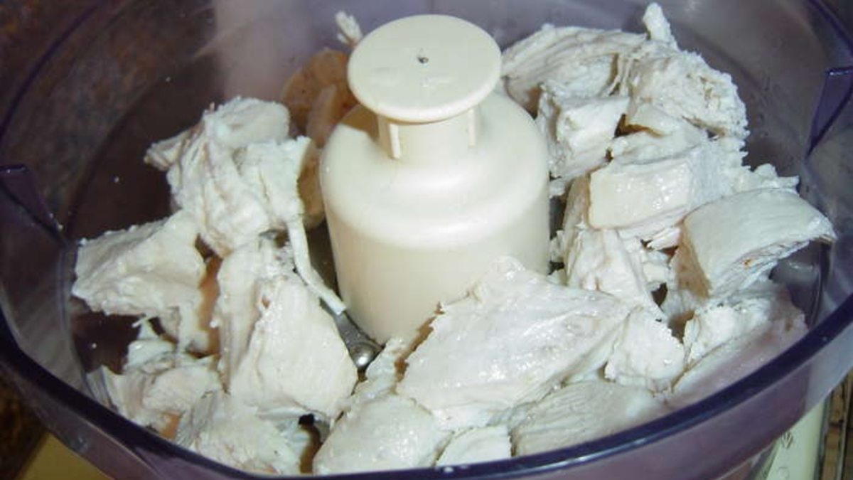 2. Podczas gdy mięso stygnie, ubij mikserem jajka. Następnie za pomocą blendera połącz ze sobą mięso oraz roztopione masło.