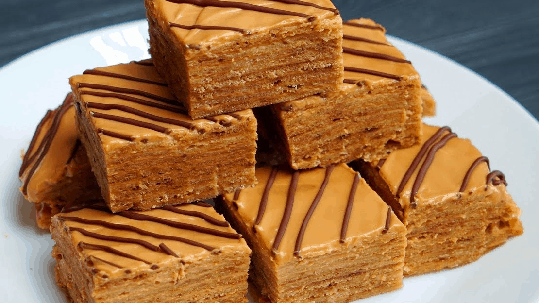 Ten pyszny deser można przygotować na patelni. Nie wymaga on użycia piekarnika! Jest tak prosty, jak ułożenie ciasta na patelni i polanie go kremem.