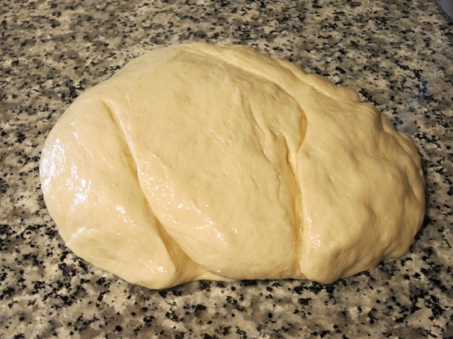 Po upływie wyznaczonego czasu dolej trochę kefiru, soli, oleju słonecznikowego i 25 g roztopionego masła. Do naczynia dodaj też miskę i zacznij wyrabiać ciasto. Zagniecioną masę włóż do pojemnika, przykryj ręcznikiem i odstaw na 60 minut tak, aby wyrosło.