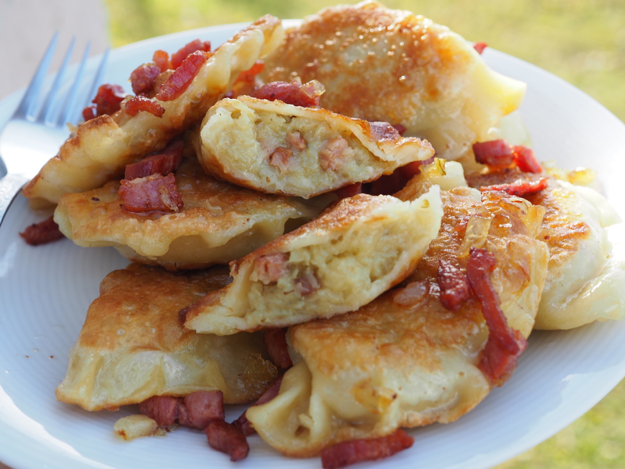 Pyszne pierogi z farszem ziemniaczanym oraz boczkiem- ich smak zachwyci każde podniebienie.