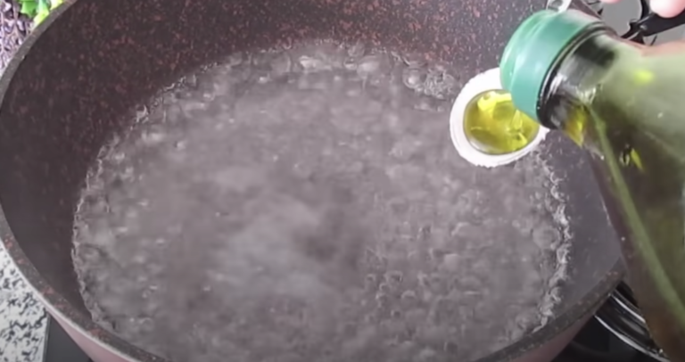 Do garnka wlewamy wodę, dodajemy olej i sól. Całość mieszamy.