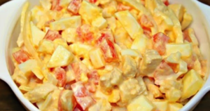 Wśród moich znajomych ta sałatka robi furorę na każdej imprezie. Wystarczy delikatnie zmodyfikować skład, żeby uzyskać zupełnie inny smak.