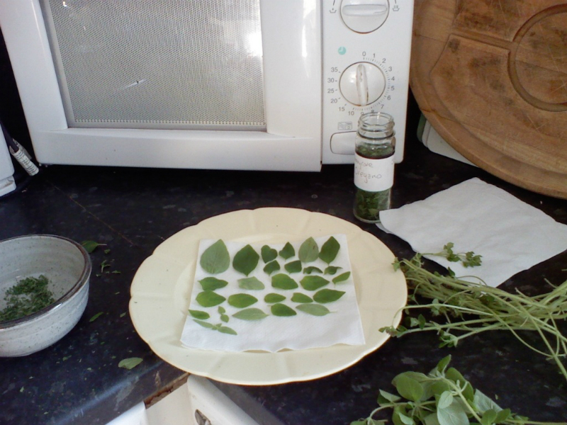 Mikrofalówkę z powodzeniem można wykorzystać do samodzielnego suszenia ziół. Umieść świeże liście mięty lub bazylii na ręczniku papierowym i włóż do mikrofali na średnią moc.