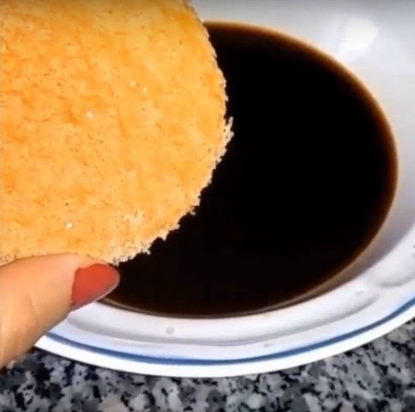 2.Z biszkoptu za pomocą szklanki powycinaj 8 kółek ( dwa kółeczka przypadają na jeden pucharek). Następnie zaparz kawę , po czym ją ostudź i namaczaj w niej wycięte kółka oraz w rumu.