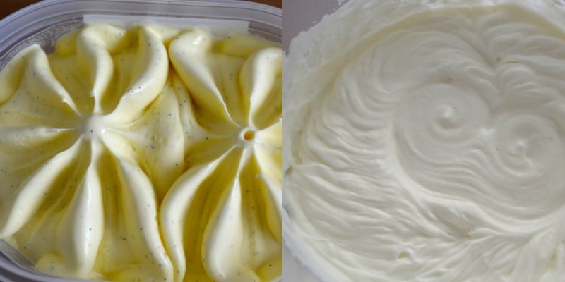 1.Rozpuszczone lody ubij z dodatkiem serka mascarpone, później podziel na dwie części. Kakao dodaj do jednej i wymieszaj dokładnie.