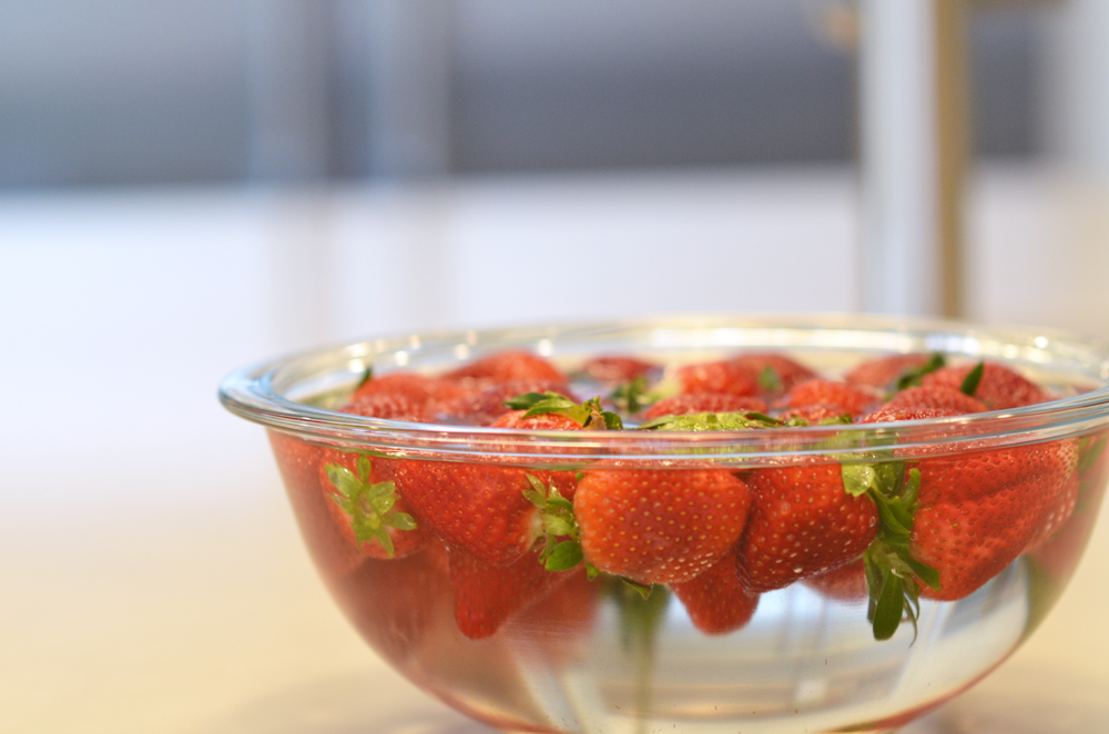 Krok 2: włóż truskawki do miski i pozostaw je tam na kilka minut, żeby zdążyły nasiąknąć. Ocet sprawia, że wszystkie zarodniki grzybów zostaną usunięte z truskawki. To właśnie przez te zarodniki grzybów truskawki szybciej miękną i zaczynają pleśnieć.