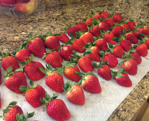 Krok 4: umieść w lodówce czysty papierowy ręcznik i ułóż na nim truskawki.