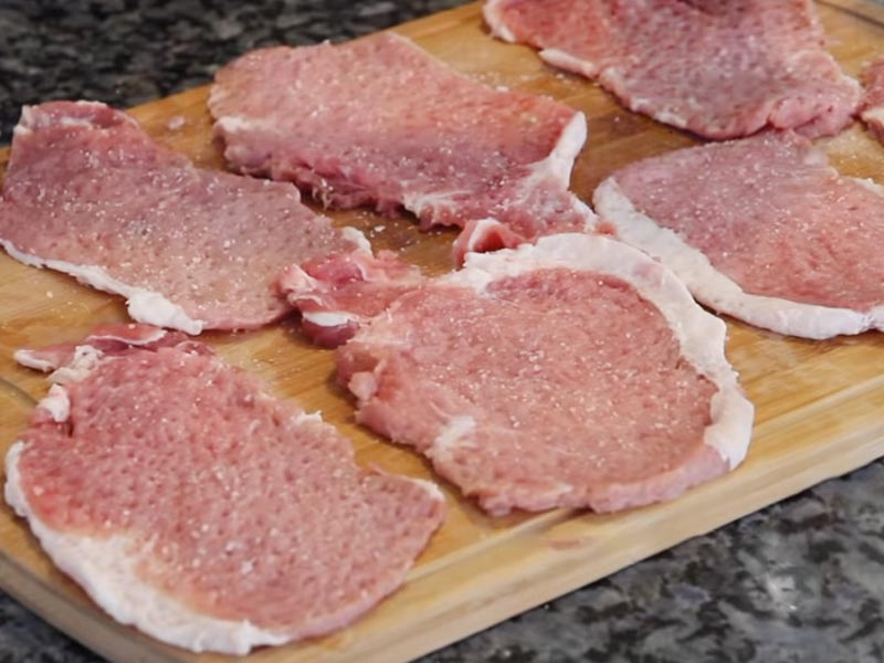 1.Na grubość 1 cm pokrój kawałki mięsa. Za pomocą tłuczka ubij je i przypraw pieprzem oraz solą. Przygotowane mięso włóż do pojemnika na 15 minut. Pół lub jedną cebulą pokrój na półpierścienie. Do osobnej miski wlej olej oraz ocet, pieprz , sól i koper. Osobno niech marynuje się cebula przez 10 minut.