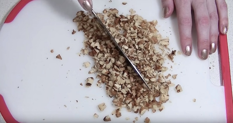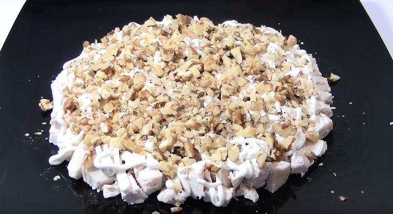 4. Następnie, pokrojone orzechy wysmarowane majonezem.